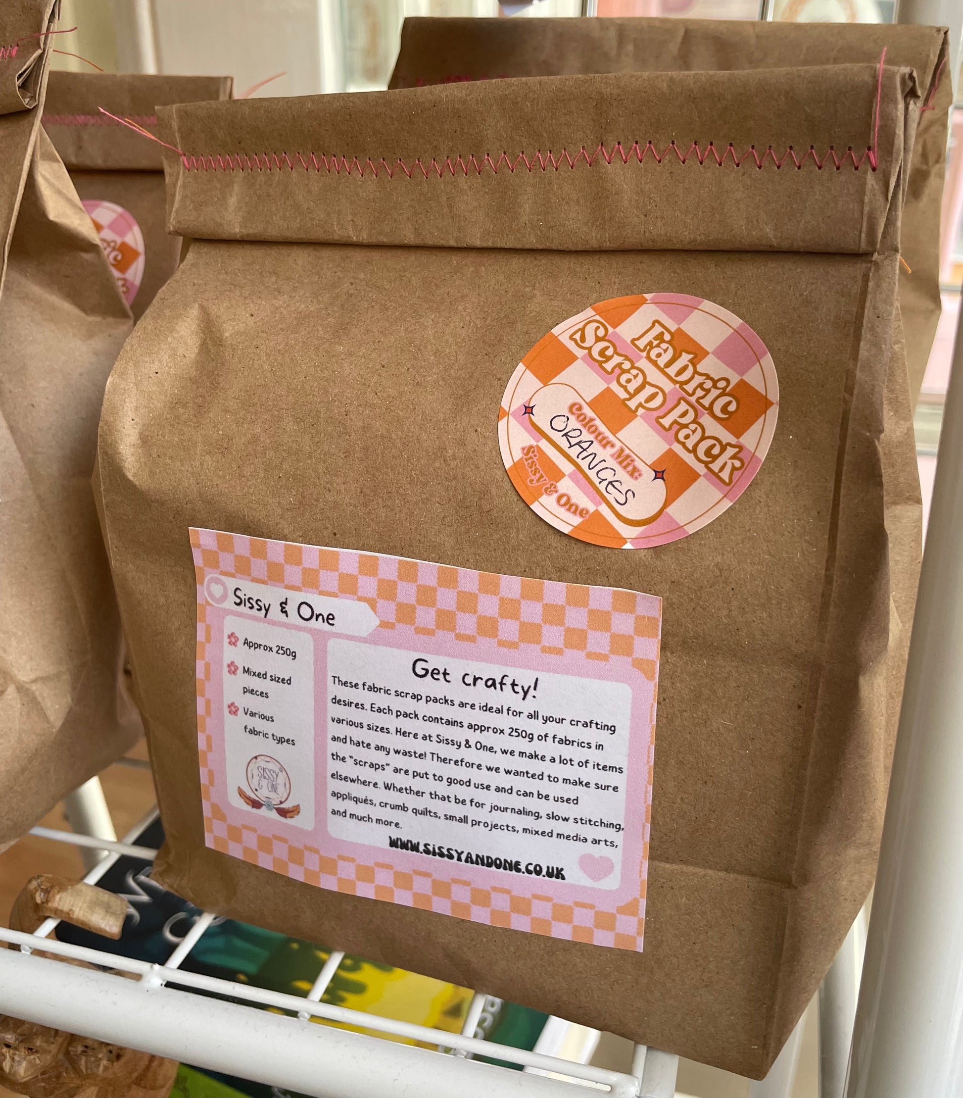 Here at Sissy & One we make a lot of items and hate any waste! Therefore we wanted to make sure the "scraps" are put to good use and can be used elsewhere. Whether than be for journaling, slow stitching, appliqués, crumb quilts, small projects, mixed media arts, and much more.