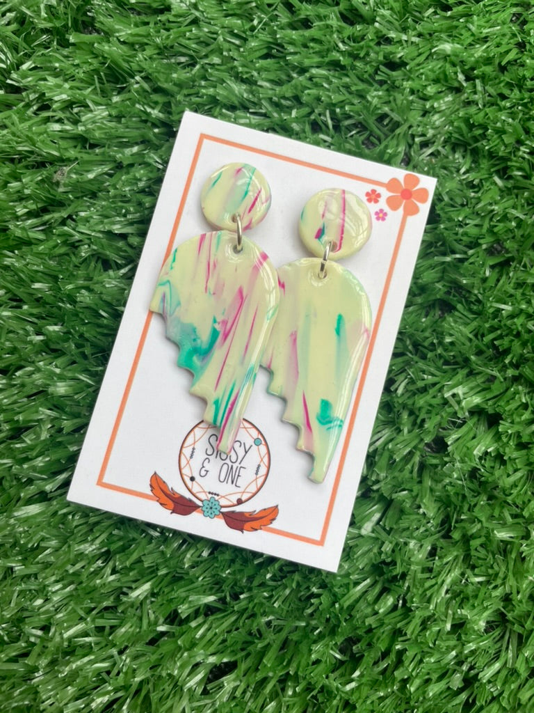 If there was such a thing as a magical stairway we feel it would look exactly like this! The mixture of creamy coloured base with swirls of pinks and blues. These earrings are clay based with an equally magical mix of colours as the stud.