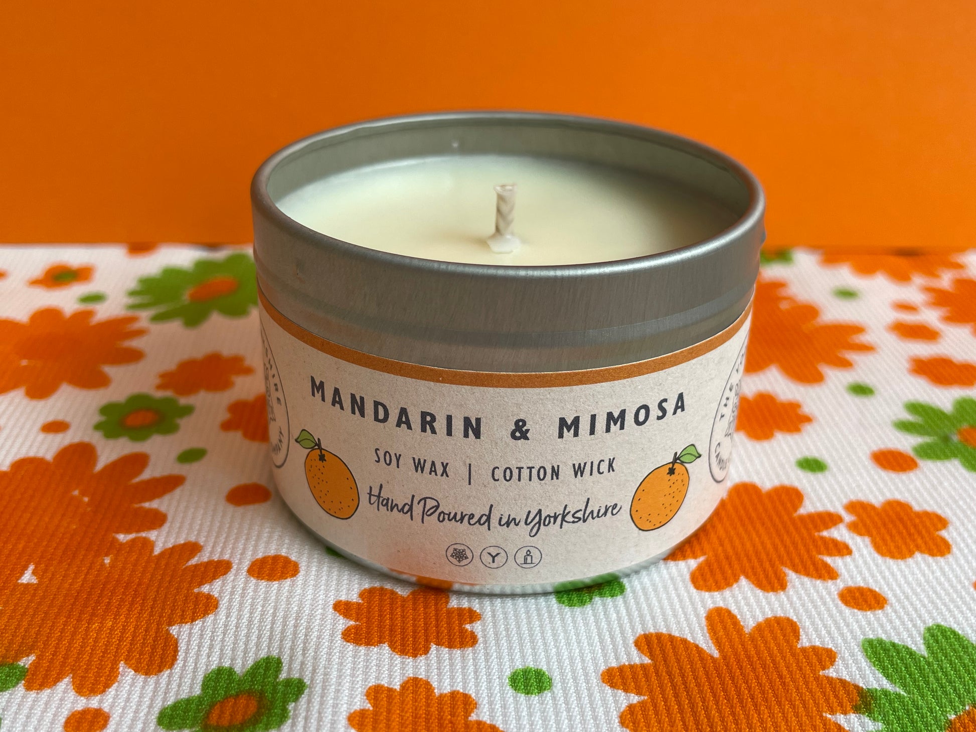 A tropical cocktail in the shape of a candle. A zingy fresh scent but also delicate. This candle is fruity with fresh ripe mandarin in a field of mimosa.