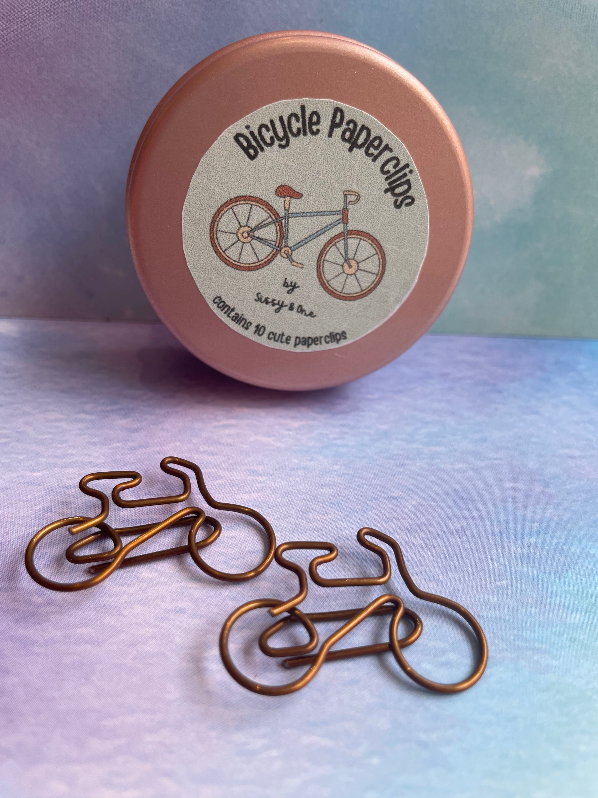 Featuring 10 paperclips shaped like bicycles, in a brown tone looking super cute! If that isn't cute enough they come in a small metal dusky pink tin.