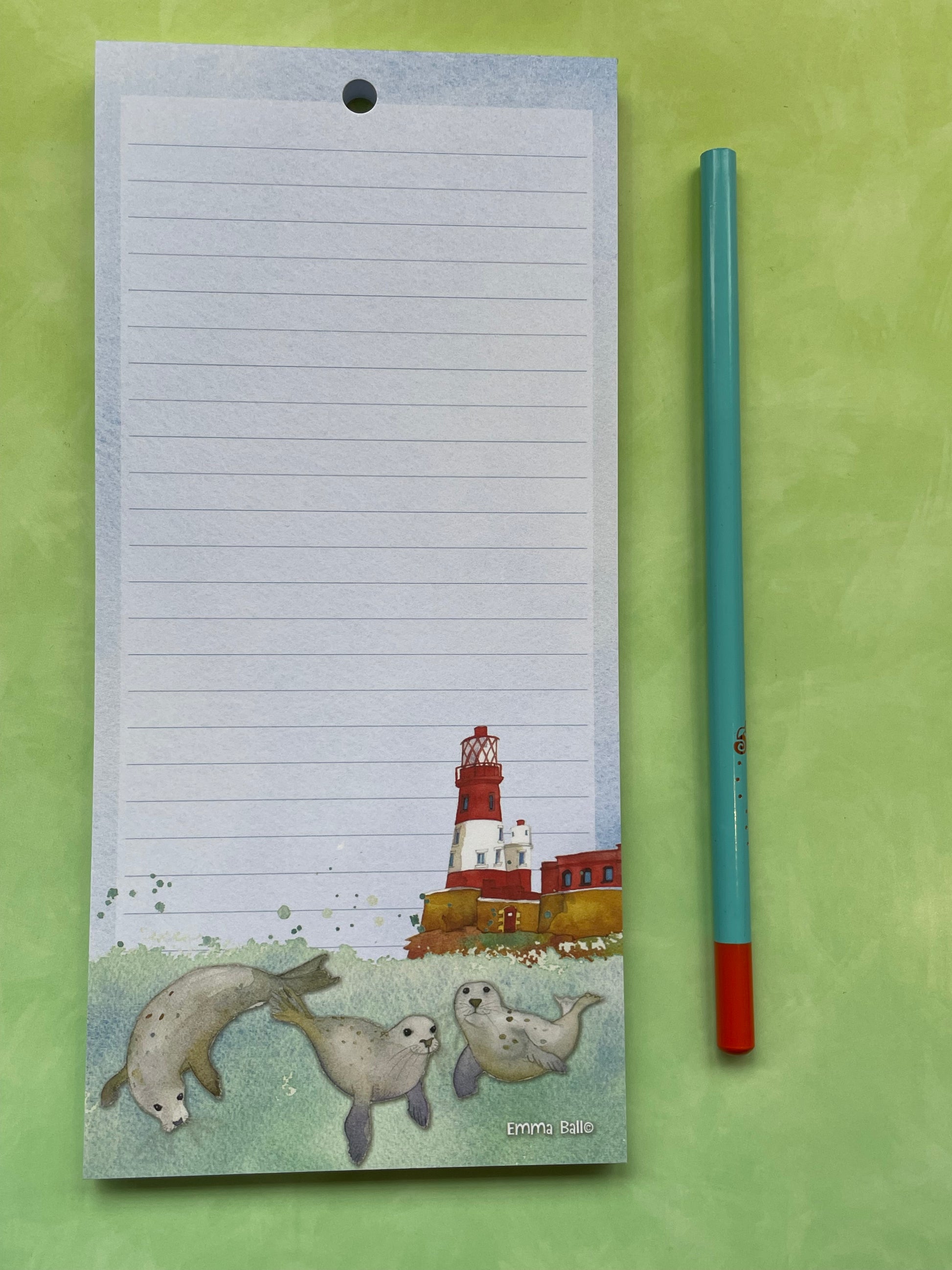 Here is a place for your to-dos to go from your mind to paper with this magnetic list pad featuring seals and a lighthouse!